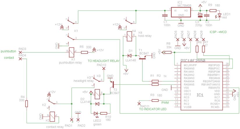 Deze schakeling is gebaseerd op de PIC 18F2550