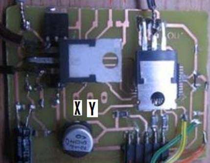 Indien gewenst, verbind een schuifschakelaar tussen X en Y of soldeer