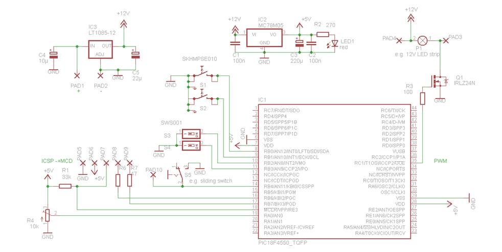 Deze schakeling is gebaseerd op de PIC18F4550 of