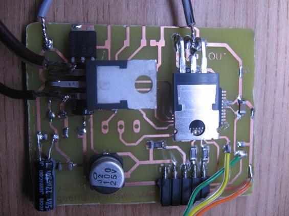 De grote transistor (IRLZ24N) en de spanningsregelaar (LT1085-12) zijn
