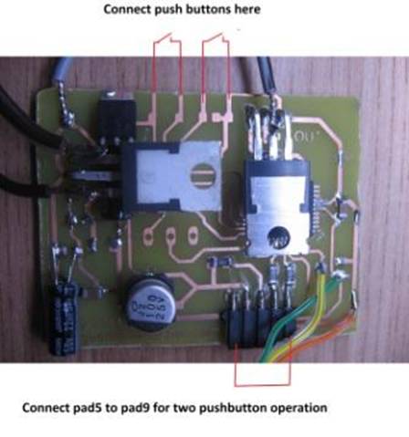 In plaats van een potentiometer kunnen ook 1 of 2 drukknoppen gebruikt