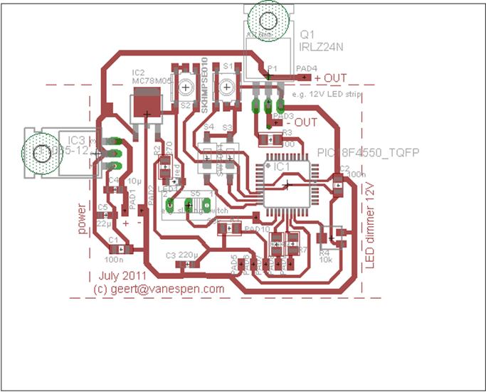 Ze is enkelzijdig uitgevoerd en ontworpen met Eagle (van Cadsoft).