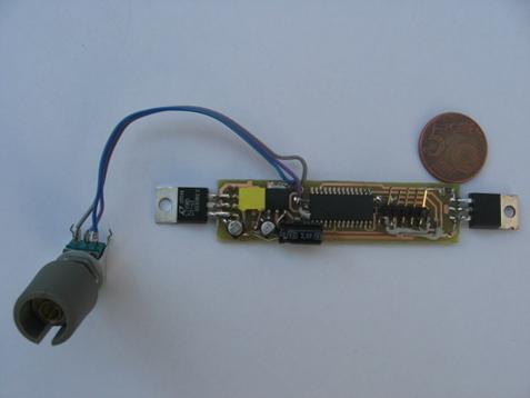 Hij bevat ook een low drop spanningsregelaar die de spanning op de LED